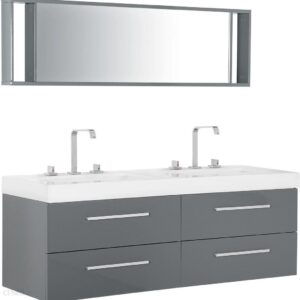 Beliani Nowoczesna umywalka łazienkowa szara podwójna szafka z lustrem Malaga