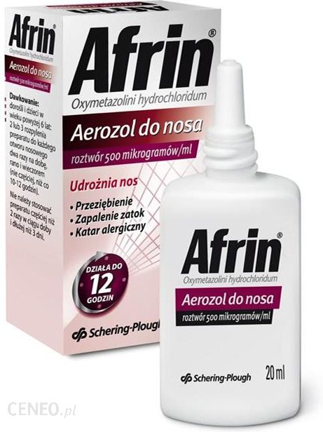 Afrin 0,05% to preparat wskazany do stosowania w przypadku obrzęku błony śluzowej nosa występującego w przebiegu przeziębienia, zapalenia zatok oraz alergicznego zapalenia błony śluzowej nosa. Miejscowo obkurcza naczynia krwionośne i udrożnia nos. Przeznaczony dla osób dorosłych oraz dzieci powyżej 6. roku życia.