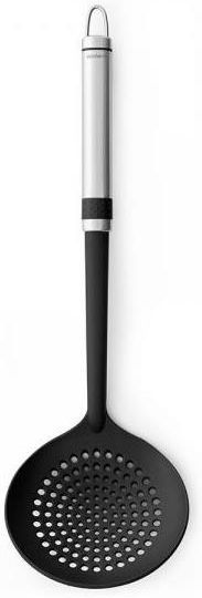 Szumówka Non StickSzumówki można używać na rozmaite sposoby: do zbierania piany, tłuszczu i innych osadów z powierzchni płynnych potraw, doskonała także do wyciągania pierogów, klusek, warzyw, czy frytek z garnka.Można myć w zmywarce.Non StickNajwyższej jakości nylon z którego została wykonana szumówka jest odporny na temperaturę do 220°C. Dodatkowe pokrycie powłoką nieprzywierającą Non Stick zapobiega przywieraniu jedzenia. Takie połączenie zapewnia komfortowe korzystanie z narzędzia i chroni naczynia kuchenne przed powstawaniem rys.div id=”opis-t” class=”col-xs-12 col-sm-12 col-md-12 col-lg-12″>Pewny chwytNarzędzia kuchenne z serii „Profile” posiadają wygodny uchwyt wykonany ze stali szlachetnej, zakończony gumową obręczą zapobiegającą wyślizgnięciu z dłoni.Zawsze pod rękąWszystkie narzędzia Brabantia „Profile” są zakończone haczykiem pozwalającym na zawieszenie w dogodnym miejscu.
