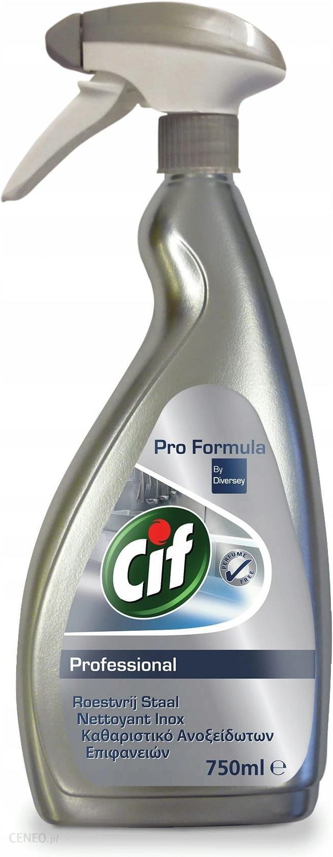 Utrzymaj blask i połysk stali nierdzewnej dzięki uniwersalnemu sprayowi do czyszczenia. Cif czyści szybko i usuwa brud, tłuszcz, kurz, odciski palców i plamy w ciągu kilku sekund. Jest to doskonały wybór do utrzymania w czystości i profesjonalnego wyglądu blatów roboczych, twardych powierzchni, miejsc do przechowywania żywności i uchwytów.Pojemność: 750 ml
