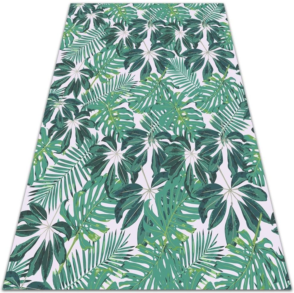 Dywan PCV to świeży trend w wystroju wnętrz. Dlaczego stał się tak popularny? Ze względu na swoje unikatowe cechy. Winyl to tworzywo odporne na rysy, zabrudzenia i kurz. Ich budowa różni się zdecydowanie od tradycyjnych wykładzin podłogowych, a przy tym jest właściwe dla alergików. Modny winylowy dywan Palmowe liście to dobry wybór również na balkon, w na którym spędza się letnie wieczory. Mata ochronna położona na kafelki skutecznie izoluje, dlatego można po niej chodzić boso z prawdziwą przyjemnością.