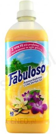 Fabuloso płyn do płukania wanilia z orchideą 1L ze skoncentrowaną formułą zmiękczającą zapewnia niespotykaną miękkość, mikrokapsułki perfum i olejki eteryczne zawarte w płynie Fabuloso pozostawiają intensywny, wyrafinowany zapach utrzymujący się na ubraniach przez długi czas. Dodatkowo technologia rozprostowywania włókien ułatwia prasowanie. 1L Koncentratu Fabuloso odpowiada 3L standardowego płynu do płukania, dzięki czemu oszczędzasz pieniądze, miejsce i chronisz środowisko! Zapach: Wanilia z orchideą