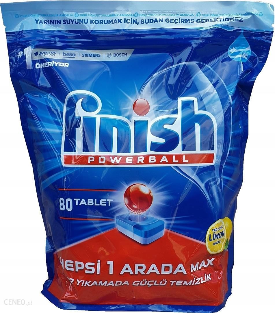 Finish Powerball Lemon tabletki do zmywarki 80 sztFinish All in 1 z formułą Powerball wzmacniającą działanie tabletki usuwa tłuszcz zapewniając idealną czystość. Finish to światowy lider w produkcji środków do zmywania, polecanych przez wiodących producentów zmywarek.Zalety produktuFunkcja namaczania wstępnego, dzięki której nie będziesz już musiał płukać naczyń przed włożeniem ich do zmywarki;Skuteczne i wydajne czyszczenie, które poradzi sobie ze wszystkim zabrudzeniami naczyń, które wylądują w Twojej zmywarce;Likwiduje uporczywy tłuszcz z Twoich naczyń oraz zapobiega jego nadmiernemu osadzaniu się w zmywarce;Zapobiega powstawaniu zacieków oraz smug dokładnie usuwając pozostałości wody i zapewniając połysk;Chroni przed osadzaniem się kamienia;Skutecznie działa nawet w niskiej temperaturzeFINISH POWERBALL ALL IN 1Wielofunkcyjne tabletki działające w 10 obszarach, usuwają nawet najtrudniejsze plamy, np. z kawy lub herbaty.1. Pre-Soaking Action – Funkcja namaczania wstępnego, dzięki której nie trzeba płukać naczyń przed włożeniem ich do zmywarki.SKŁADNIKI5 – 15 % związki wybielające na bazie tlenu, niejonowe środki powierzchniowo czynne, < 5 % polikarboksylany,fosfoniany. Enzymy (subtylizyna, amylaza), kompozycja zapachowa. Więcej informacji o składnikach: www.rbeuroinfo.com.PRZYGOTOWANIE I STOSOWANIEW celu osiągnięcia najlepszych rezultatów bez względu na rodzaj zabrudzenia dla wszystkich twardości wody odpakuj i połóż jedną tabletkę w suchym dozowniku. Jeśli tabletka nie mieści się w dozowniku, skontaktuj się z producentem zmywarek lub sprawdź instrukcję.OSTRZEŻENIA DOTYCZĄCE BEZPIECZEŃSTWADziała drażniąco na oczy. Przed użyciem przeczytać etykietę. Chronić przed dziećmi. W razie konieczności zasięgnięcia porady lekarza, należy pokazać pojemnik lub etykietę. Dokładnie umyć ręce po użyciu.Sposób użyciaTrzymaj tabletkę tylko suchymi dłońmi! Dla najlepszych rezultatów do każdego zmywania bez względu na rodzaj zabrudzenia dla wszystkich twardości wody umieść jedną tabletkę w suchym dozowniku. Nie zdejmuj folii z tabletki. Jeśli tabletka nie mieści się w dozowniku, skontaktuj się z producentem zmywarek lub sprawdź instrukcję. W celu osiągnięcia najlepszych rezultatów w krótkich cyklach, umieść tabletkę Finish All in 1 Max na dnie zmywarki. Zawsze zamknij torbę po użyciu. Chroń produkt przed wysokimi temperaturami i wilgocią. Funkcja soli jest skuteczna w wodzie o niskim i średnim stopniu twardości do 21°dh/26°e. W przypadku twardej wody, możesz wzmocnić działanie dodatkowo używając soli Finish do zmywarek. W celu osiągnięcia najlepszych rezultatów korzystaj z programów 50/55°C lub Auto. Produkt bezpieczny dla szamb. Opakowanie nadaje się do recyklingu tylko po całkowitym opróżnieniu! Produkt nie chroni przed uszkodzeniami mechanicznymi orz nie odnawia uszkodzonych naczyń. Płyn nabłyszczający Finish jest polecany dla najlepszych efektów schnięcia.PRAWDZIWE ZDJĘCIA PRODUKTUPrzedstawiamy oryginalne zdjęcia produktu wykonane przez nas tak aby Klient wiedział dokładnie co otrzyma w paczce po zakupie w naszym sklepie.WSZYSTKIE NASZE PRODUKTY SĄ NOWE I FABRYCZNIE ZAPAKOWANEChcesz poznać nasze oferty !!!Kliknij "Wszystkie przedmioty sprzedającego" lub zjedź na dół aukcji !!!