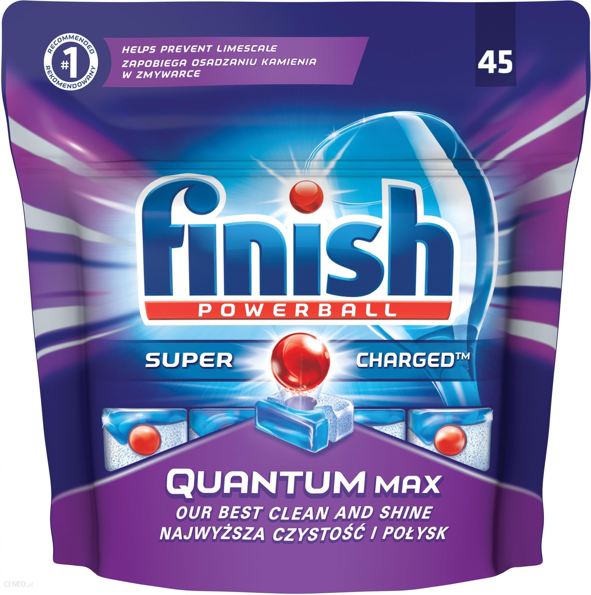 Finish Quantum Max to wielofunkcyjne żelowe kapsułki do zmywarek, które działają aż w 14 obszarach. Usuwa nawet najtrudniejsze zabrudzenia już przy pierwszy użyciu. Eliminują uporczywe plamy tłuszczu, przebarwienia po kawie czy herbacie oraz przypalone resztki jedzenia. Zapewniaj najwyższą możliwą czystość i blask. Dodatkowo działają ochronnie dla filtrów i innych ukrytych części zmywarki. Posiadają również funkcję ochrony szkła i srebra. Zapobiegają osiadaniu wapiennego nalotu i kamienia na naczyniach. Quantum Max działają również w niskich temperaturach. Dodatkowo pełnią funkcję nabłyszczacza i soli. Udoskonalona formuła Powerball zapewnia doskonały połyski skuteczne czyszczenie. Proste w użyciu – bez konieczności dodatkowego rozpakowywania i brudzenia rąk.Pozostawiają świeży zapach.