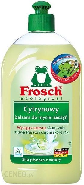 FROSCH PROFESJONALISTA W UTRZYMANIU CZYSTOŚCI W TWOIM DOMUFrosch to uniwersalne środki czystości na bazie naturalnych składników. Od 25 lat produkty tej marki są sprzedawane na terenie całej Europy i zyskały zaufanie klientów, gdyż są wydajne, efektywne, chronią skórę dłoni i pozostawiają świeży zapach czystości. To marka naturalna, wygodna w użyciu, o przemyślanej kompozycji i sympatycznym wizerunku. Wszystkie nasze produkty ulegają w wysokim stopniu biodegradacji. Frosch to gwarancja skutecznego czyszczenia w zgodzie z naturą. Płyn jest ekologiczny ,posiada znak ekologiczności ECOLABEL.Nadaje się do przydomowych oczyszczalni ścieków.Nie posiada szkodliwych substancji chemicznych takich jak : fosforany,borany,formaldehyd,NTA,EDTA,związki chlorowcoorganiczne,PCW.FROSCH balsam do naczyń cytrynowy 500mlWŁAŚCIWOŚCIpozostawia lśniąco czyste naczynia.formuła oparta na wyciągach z skórki cytrynowej i związkach powierzchniowo czynnych pochodzenia roślinnego skutecznie usuwa tłuszcz i zabrudzenia.dba o skórę chroniąc ją przed wysuszeniemposiada neutralne PH – produkt testowany dermatologicznie, utrzymuje prawidłowe nawilżenie skóry rąk. ZASTOSOWANIE zalecana dawka na 5 litrów wody do zmywania naczyń: brudne: 2ml , bardzo brudne 4ml.w celu oszczędności nie stosować wody bieżącej,lecz zanurzać naczynia w wodzie,stosując zalecaną dawkę. SKŁADNIKI5-15% anionowe środki powierzchniowo czynne ,