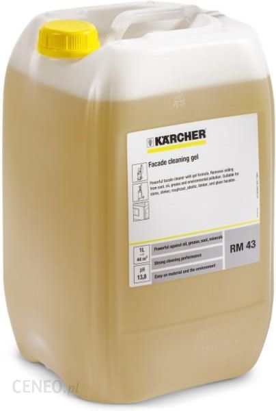 Silnie zasadowy (pH: 13.5 w koncentracie) preparat do czyszczenia fasad w żelu. Usuwa zanieczyszczenia z sadzy, olejów i smarów oraz zanieczyszczenia emisyjne. Nadaje się do elewacji z kamienia, tynku dekoracyjnego, tworzywa sztucznego, drewna, szkła i aluminium. RM 43 przeznaczony jest do stosowania z urządzeniami wysokociśnieniowymi HD i HDS oraz ze spryskiwaczami wstępnymi. Przygotowanie: > 6% (żel) Dozowanie: < 6% (płyn)