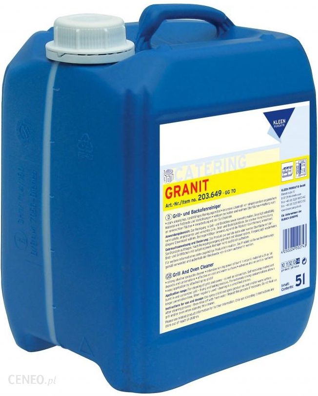 Kleen Granit płyn do czyszczenia grilla i piekarnikówDlaczego warto wybrać ten produkt?środek alkalicznysprawdza się do czyszczenia grilli i piekarnikówrozpuszcza zaschnięte resztki tłuszczu, żywiczne osady po dymiesprawdza się na powierzchniach ciepłych i zimnychczyści nawet trudne do usunięcia zabrudzeniawygodny w stosowaniu pionowymPłyn do czyszczenia grilla i piekarników. Silnie alkaliczny środek czyszczący, do zastosowania metodą natryskową. Posiada właściwości intensywnie rozpuszczające przypalone resztki organiczne, takie jak tłuszcz i zwęglenia.Właściwości:Rozcieńczenie: Produkt gotowy do użyciapH :142 x 5 L + spryskiwacz1L + spryskiwacz