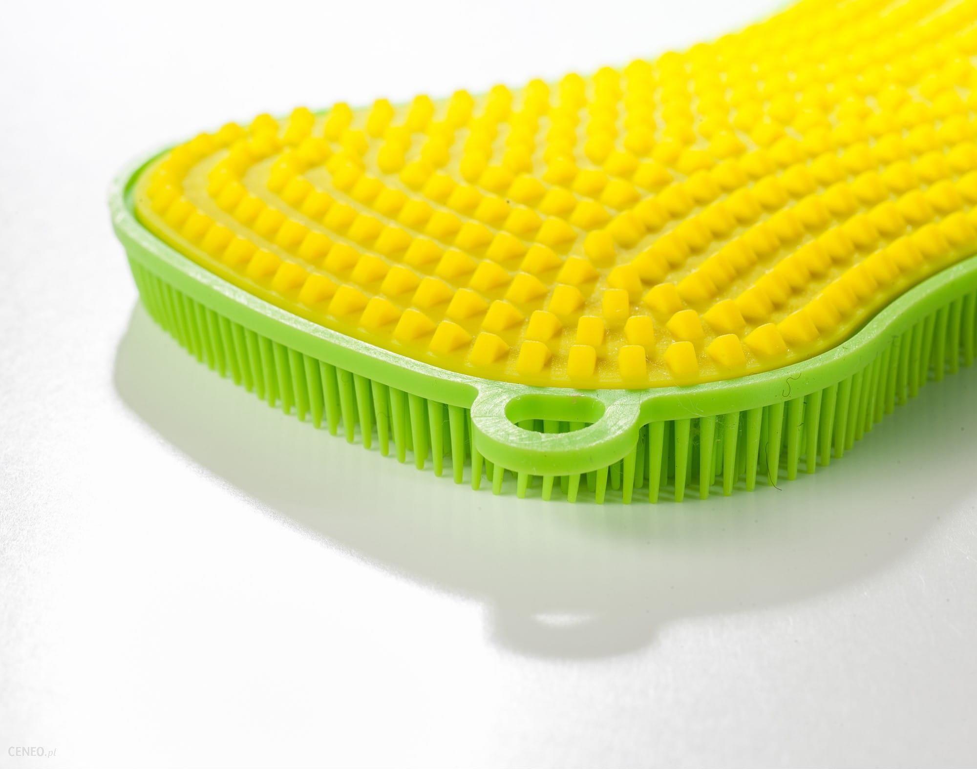 Myjka silikonowa Scrubby to znakomita alternatywa dla tradycyjnego kuchennego zmywaka. Jej silikonowe włókna doskonale zbierają brud i dzięki elastyczności docierają nawet w trudno dostępne miejsca. Struktura materiału zapobiega gromadzeniu się wilgoci, a w konsekwencji – rozwojowi bakterii. Powierzchnia szczotki jest pokryta małymi ząbkami: z jednej strony krótszymi, z drugiej dłuższymi, do wykorzystania w zależności od zastosowania. Zastąpi tradycyjne gąbki szczotki czy szmatki. Łatwa w utrzymaniu czystości wystarczy umyć ją pod bieżącą ciepłą wodą, lub włożyć do zmywarki. Myjka wielokrotnego użytku: odporność na temperaturę od – 40 ° C do + 300 ° C Wymiary: 13,5 x 8,5 cm Ponad 2500 miękkich silikonowych nubów ułatwia czyszczenie. Do mycia patelni i porcelany Do czyszczenia owoców i warzyw Jako peeling do twarzy i ciała Szybki i higieniczny do czyszczenia w zmywarce lub pralce Zapobiega zadrapaniom i chroni powierzchnie 100% bezpiecznego silikonu