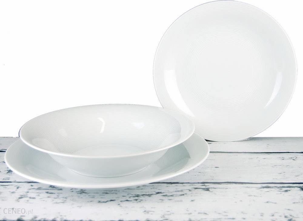 LUBIANA TIAGO – 18 częściowy, porcelanowy serwis obiadowy w kolorze białym na 6 osób