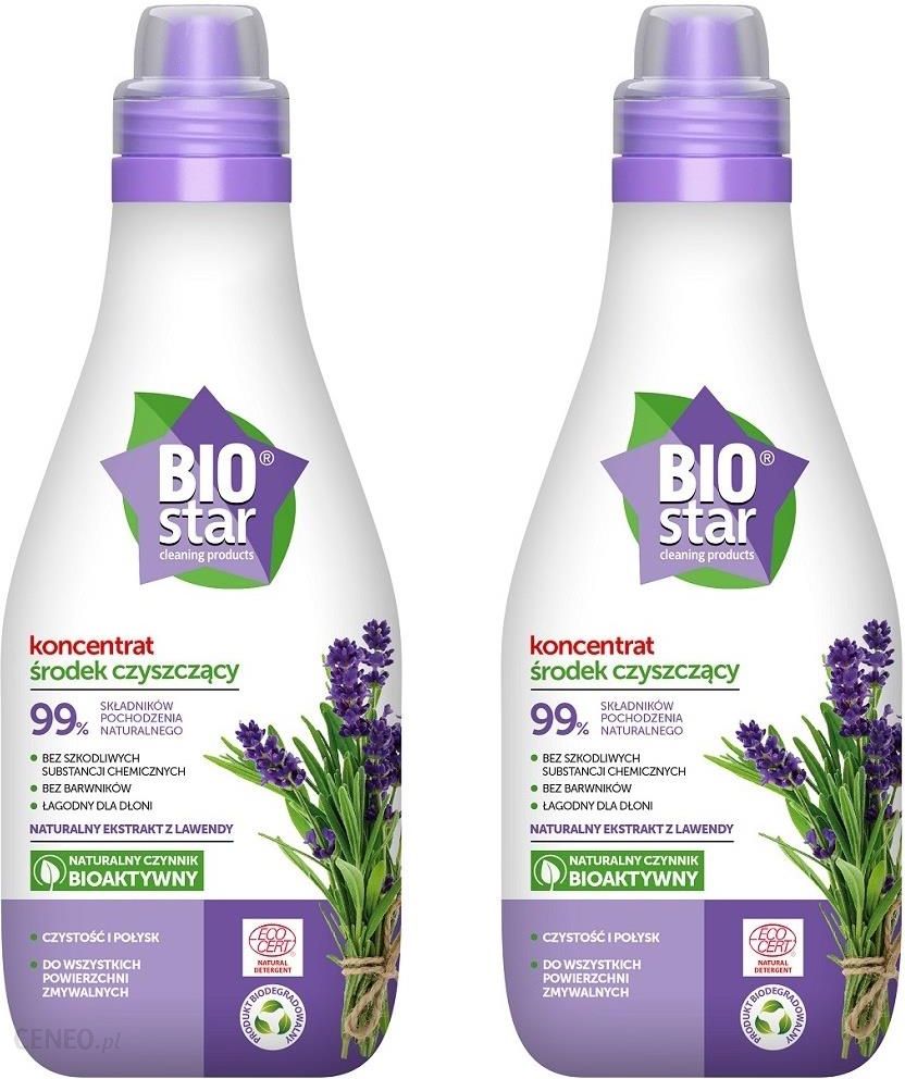 2x BIOstar Ekologiczny środek czyszczący w koncentracie – 800mlProdukty z serii BIOstar cleaning products wytwarzane są w przyjaznych dla środowiska technologiach produkcji przy jednoczesnym wykorzystaniu naturalnych surowców. Spełniają bardzo wysokie kryteria środowiskowe, które zostały potwierdzone certyfikatami zaufanych i niezależnych jednostek certyfikujących PCBC S.A. Polskie Centrum Badań i Certyfikacji S.A. oraz ECOCERT Greenlife SAS.Charakterystyka- W ZESTAWIE DWIE BUTELKI KONCENTRATU DO CZYSZCZENIA- ekologiczny koncentrat przeznaczony do czyszczenia powierzchni zmywalnych w całym domu- pozostawia powierzchnie świeże, czyste, o przyjemnym zapachu lawendy i werbeny- w 99% ze składników pochodzenia naturalnego, łagodny dla dłoni- zawiera naturalny ekstrakt z lawendy oraz czynnik bioaktywny- płyn nie zawiera substancji szkodliwych dla środowiska- sposób użycia: Do czyszczenia dużych powierzchni, w przypadku normalnych zabrudzeń stosować w formie rozcieńczonej: 1/4 nakrętki (ok. 1 łyżki) na 5l wody. W przypadku silniejszych zabrudzeń stosować preparat w formie skoncentrowanej, po usunięciu zanieczyszczenia powierzchnię spłukać wodą.Dane techniczne- gramatura: 1,6l (800ml x 2)- rodzaj: środek czyszczący w koncentracie- opakowanie: butelka z korkiem- zapach: lawenda- producent: Grupa Inco sa.- EAN: 5900498026689