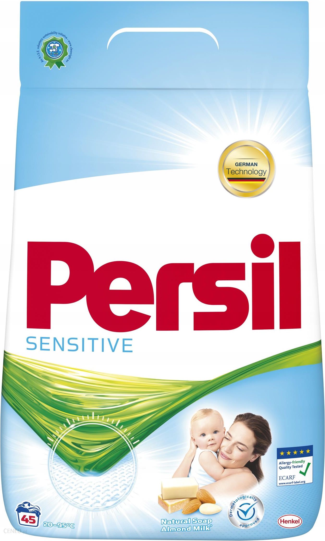PERSIL Proszek Do Prania Tkanin Dla Delikatnej i Wrażliwej Skóry – Sensitive 2,925 Kg (45 Prań)Proszek Persil Sensitive zapewnia efektywne usuwanie plam,będąc jednocześnie delikatnym dla Twojej skóry.Jakość przyjazna dla alergików, potwierdzona przez ECARF i rekomendowana przez dermatologów,z mydłem z naturalnych surowców i z przyjemnym zapachem mleczka migdałowego.Nie zawiera żadnych barwników,a jego perfumy opracowano specjalnie dla skóry wrażliwej. Persil Sensitive to przyjazny dla skóry detergent, ale bezkompromisowy w przypadku plam.