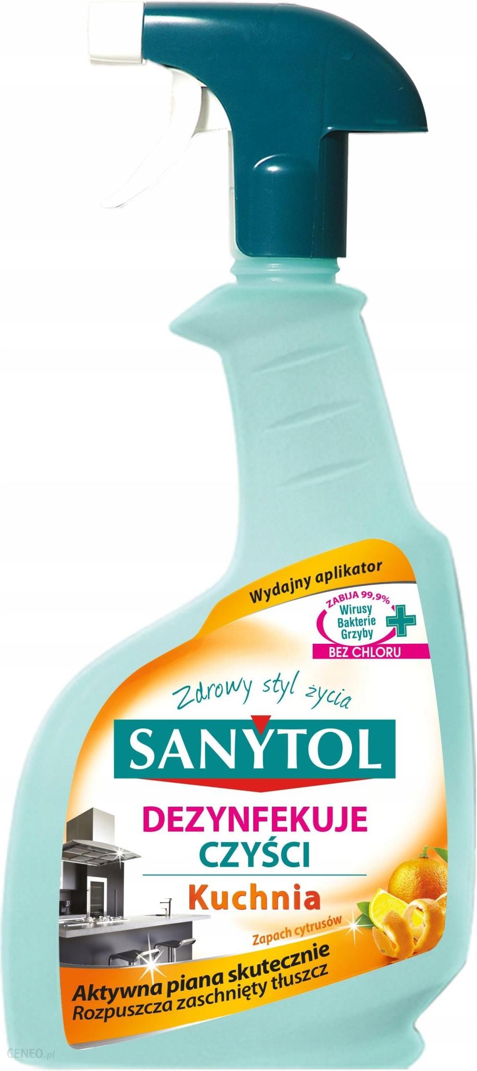 Wydajny aplikator zabija 99,9%: wirusy, bakterie, grzybybez chloruaktywna piana skutecznie rozpuszcza zaschnięty tłuszczPrzechowywać w temperaturze otoczeniaCo dezynfekuje?- kuchenki, piekarniki i grille.- zlewozmywaki, powierzchnie ze stali nierdzewnej, ceramiki lub marmuru.- blaty, płytki, lodówki, mikrofalówki, meble kuchenne.Nie wdychać par produktu. Zapewnić odpowiednią wentylację.Jak dezynfekować?Obrócić końcówkę spryskiwacza w pozycję „On”. Spryskać powierzchnię produktem, pozostawić na 5 min, a następnie zetrzeć wilgotną gąbką. Aby usunąć przywierający kamień i grzyb, pozostawić na 15 min, następnie doczyścić szmatką lub gąbką. Powierzchnie mające kontakt z żywnością spłukać wodą przeznaczoną do spożycia.