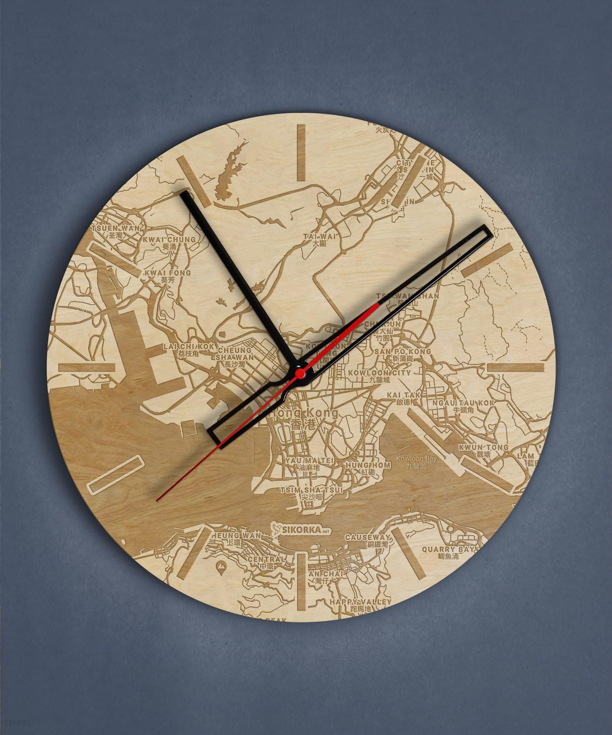 Sikorka.Net Dekoracyjny Drewniany Zegar Na Ścianę Miasto Hong Kong Naturalny Naturalny