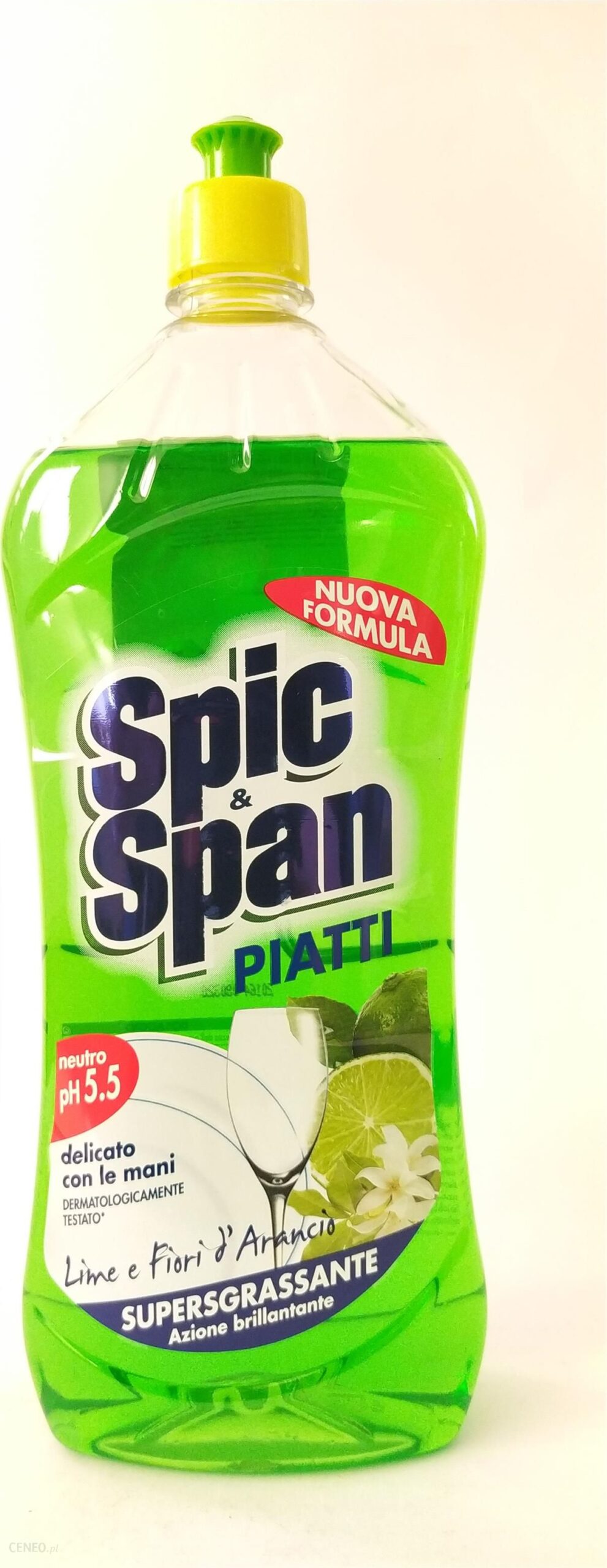 Płyn do mycia naczyń Spic Span limonka i kwiaty 1LPłyn do mycia naczyń Spic Span limonka i kwiaty 1L(opakowanie 1000ml)Spic and Span to jedna z najbardziej znanych marek środków czyszczących na świecie. Cechą charakterystyczną firmy jest dostarczenie swoim klientom najwyższej jakości detergentów za przystępną cenę. Po podboju rynku amerykańskiego Spic and Span rozszerzył swoją ofertę także na Europę zachodnią, w tym na rynek włoski.Włoski płyn do mycia naczyń o bardzo gęstej formule, o pH zbliżonym do pH skóry. Zabójczy dla brudu, delikatny dla Twoich rąk.Produkt o przyjemnym zapachu limonki i kwiatów pomarańczy.Jesteśmy bezpośrednim importerem produktów znanej włoskiej marki dlatego można nam zaufać, że produkty które oferujemy są w 100% oryginalne.Płyn do mycia naczyń marki Spic & Span o niespotykanym zapachu