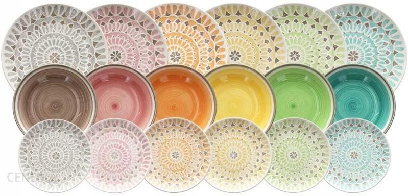 Zestaw obiadowy TOGNANA Cape Town 6/18 o ludowych, wielobarwnych wzorach, ręcznie malowany. Seria talerzy wykonana z kamionki nawiązuje stylem i kolorystyką do ciepłego klimatu Włoch, skąd pochodzi marki Tognana.
