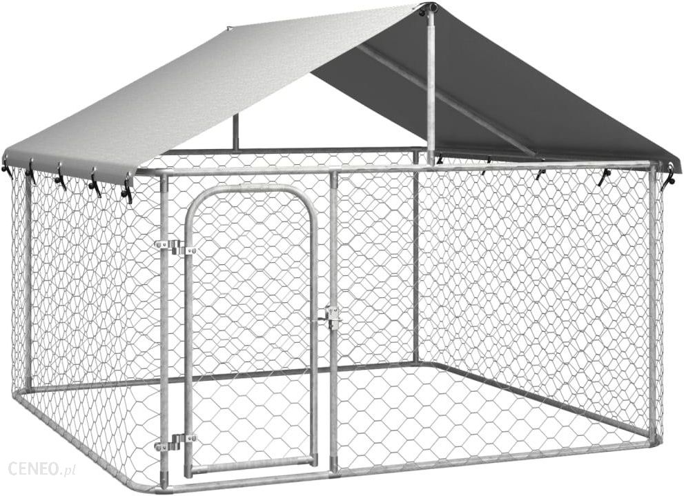 bezpieczeństwo.SpecyfikacjeKolor: srebrnyMateriał: stal galwanizowana, tkanina (100% polietylen)Wymiary całkowite: 200 x 200 x 150 cm (dł. x szer. x wys.)Wymiary bramki: 45 x 91 cm (szer. x wys.)Z zadaszeniemZasuwka z zamknięciemŚciany boczne z siatkiWymagany montaż: tak