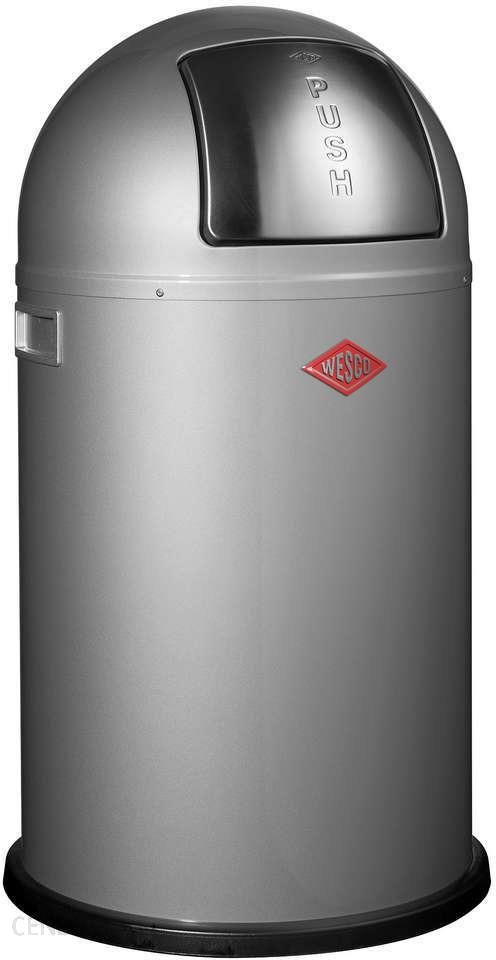 Wesco Pushboy 22 l Kosz na śmieci wykonany został z wysokiej jakości stali malowanej proszkowo. Produkt posiada uchylną stalową klapę oraz zdejmowaną górną pokrywę po to by wygodnie wyjąć i oczyścić stalowy wkład. Baza kosza jest solidna, została również zabezpieczona dzięki czemu nie będzie się niszczyła oraz przesuwała. Pojemnik posiada stalowy, wyjmowany wkład na nieczystości. Poza praktycznymi walorami kosz sam w sobie jest wyjątkową ozdobą. Właściwości: – wysokość – 63cm – średnica – 35cm – pojemność – 22l – kolor: ciepły szary wkład wymiary: – wysokość – 43,5cm- średnica – 27cm