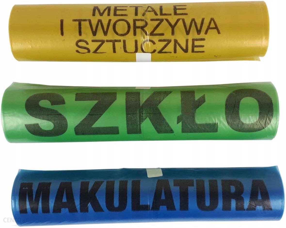 ZESTAW MOCNYCH WORKÓW NA ŚMIECI DO SEGREGACJI ODPADÓW 120L W skład zestawu wchodzą 3 rolki po 25szt w kolorach: Żółty – metale i tworzywa sztuczne 25szt/rolka Zielony – szkło 25szt/rolka Niebieski – makulatura 25szt/rolka Łącznie 75 worków po 25szt z każdego koloru. PARAMETRY PRODUKTU: Pojemność: 120 litrów Ilość w zestawie: 3x25szt. Kolory: Zielony, żółty, niebieski i Przeznaczenie: Metale i tworzywa sztuczne, szkło, makulatura, pozostałe Duża elastyczność oraz wytrzymałość Grubość 35μm