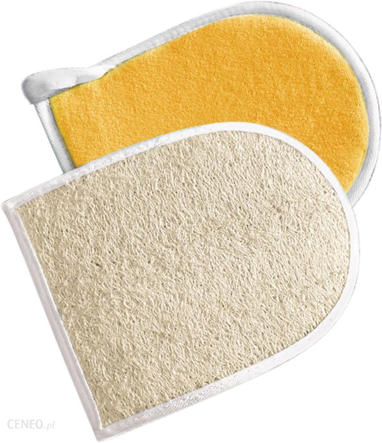 Rękawica do kąpieli i peelingu z naturalnej luffyDwustronna rękawica do kąpieli wykonana z naturalnej luffy oraz miękkiej mikrofibry. Rękawica świetnie sprawdza się do mycia, masażu i peelingu ciała. Przy regularnym użytkowaniu korzystnie wpływa na mikrokrążenie i dotlenienie komórek skóry, pozostawiając ją jędrną i przyjemnie gładką.Zalety stosowania naturalnej gąbki z luffy:poprawia elastyczność i kondycję skóry,sprzyja redukcji cellulitu i rozstępów,pobudza krążenie krwi, wpływa na dotlenienie komórek i odżywienie tkanek,działa jak naturalny peeling: usuwa zrogowaciały naskórek i wygładza szorstkie miejsca – szczególnie na piętach lub łokciach,zapobiega wrastaniu włosów po depilacji,przy systematycznym stosowaniu pomaga redukować blizny na skórze,może być używana do intensywnego masażu całego ciałaDelikatna warstwa rękawicy z mikrofibry nadaje się natomiast do oczyszczania twarzy, szyi czy dekoltu. Pozytywnie wpływa na dotlenienie i regenerację naskórka, a także przyspiesza wchłanianie kosmetyków.Rękawica wyposażona została w gumkę, która zapobiega zsuwaniu się z dłoni podczas zabiegów pielęgnacyjnych.Luffa staje się miękka pod wpływem wody i twardnieje po wyschnięciu. Nie zawiera sztucznych barwników i posiada naturalne właściwości zapobiegające namnażaniu się bakterii na powierzchni gąbki.